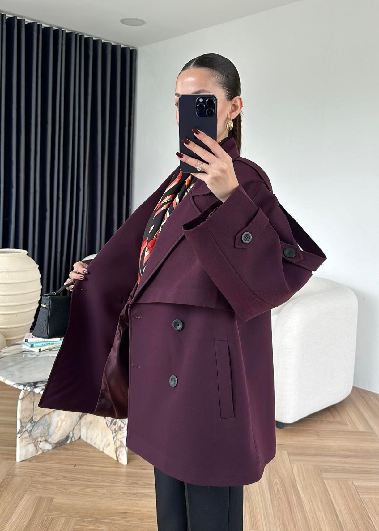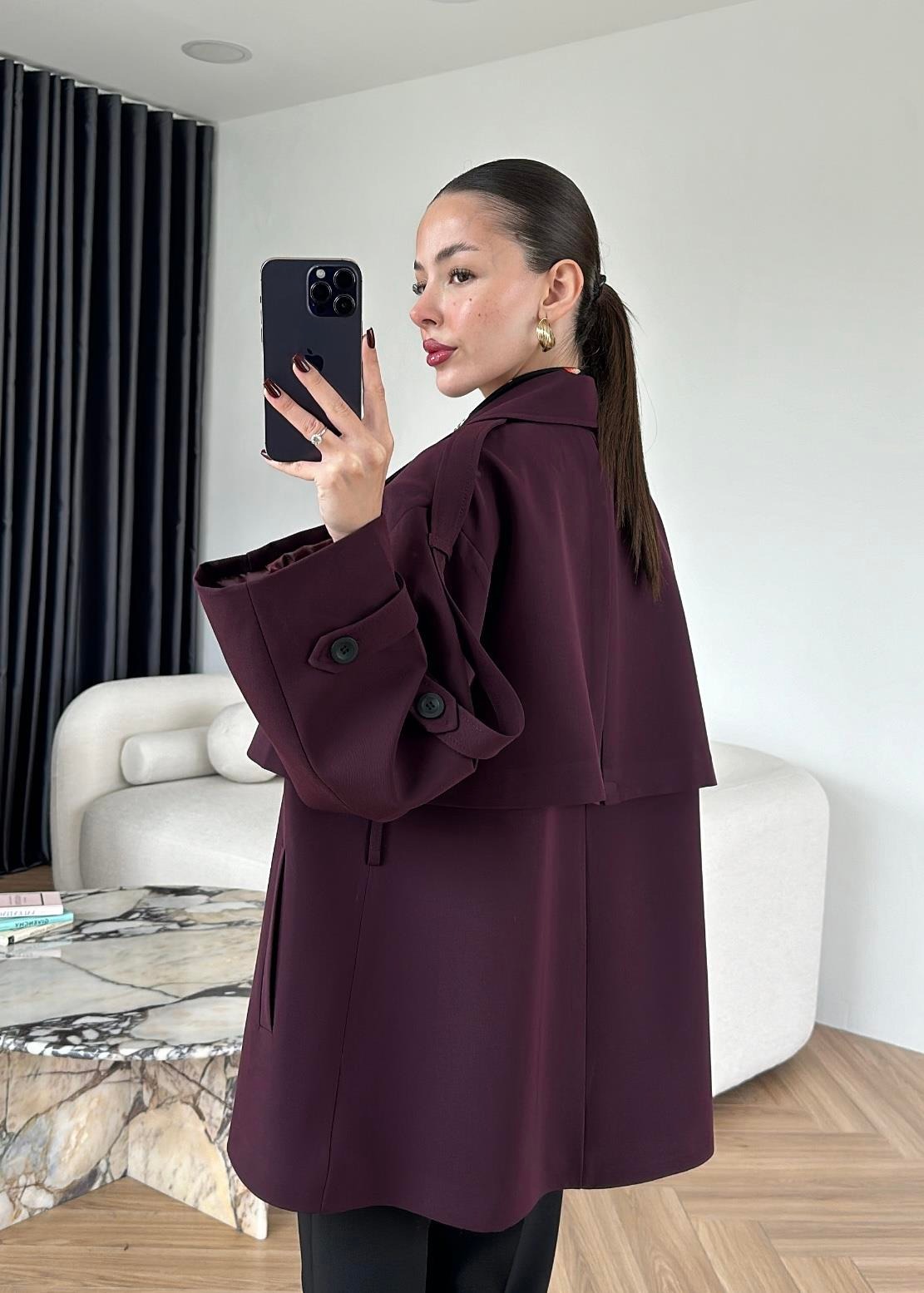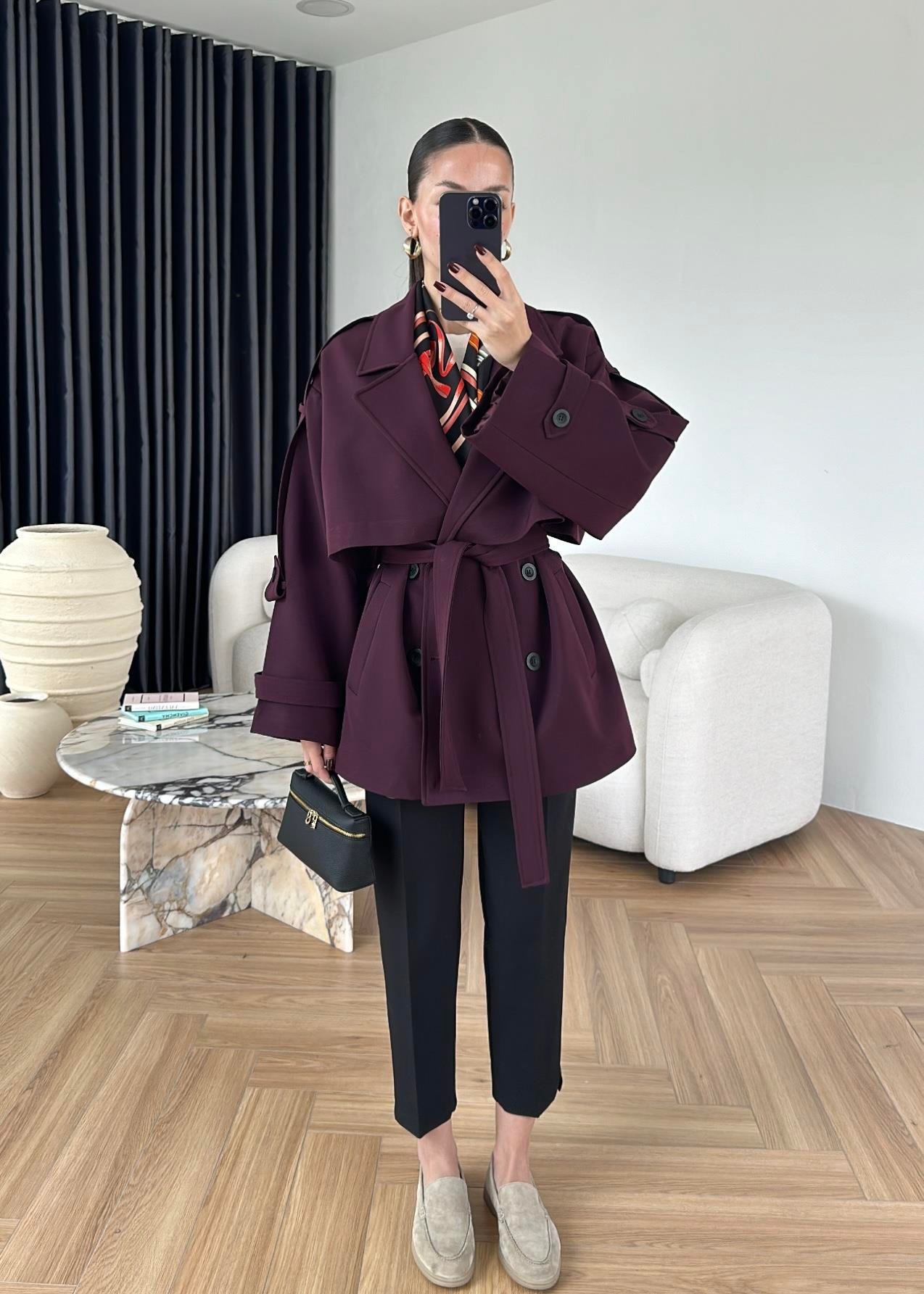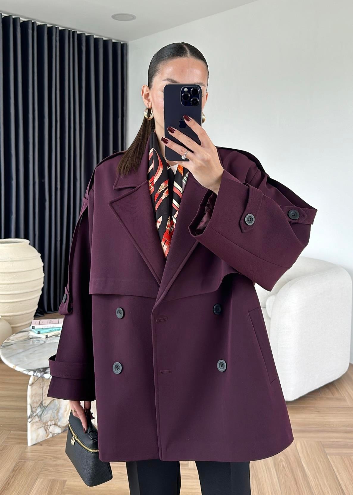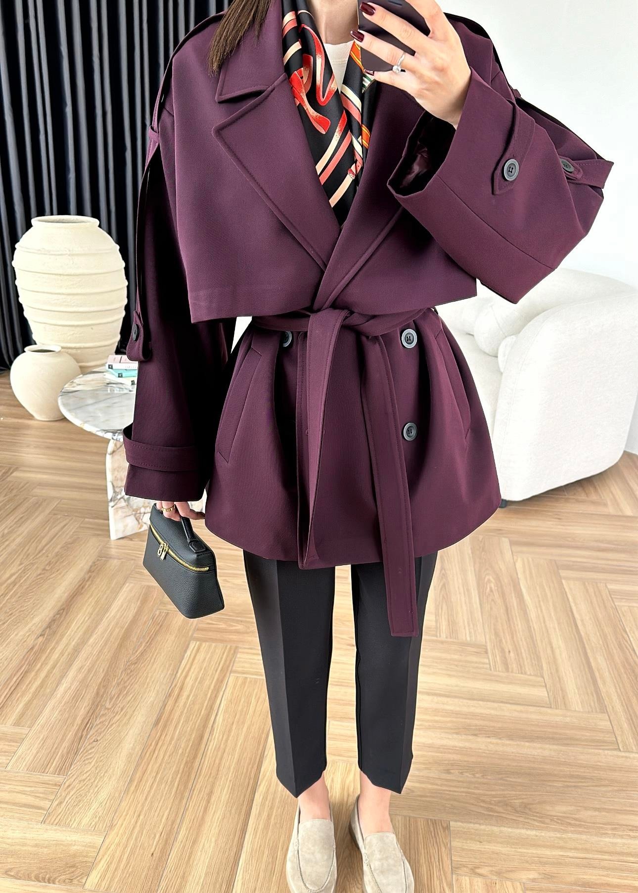 Çekimde S Beden kullanılmıştır,Astarlı kuşaklı ve ceplidir.