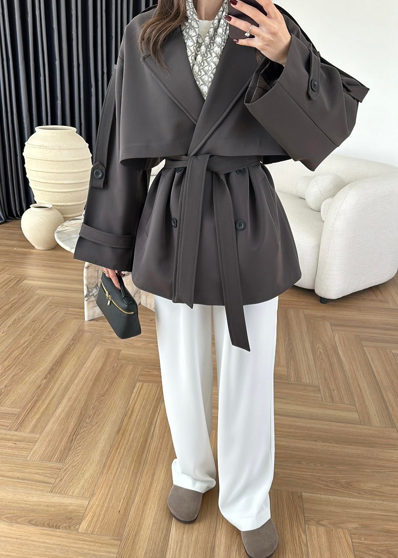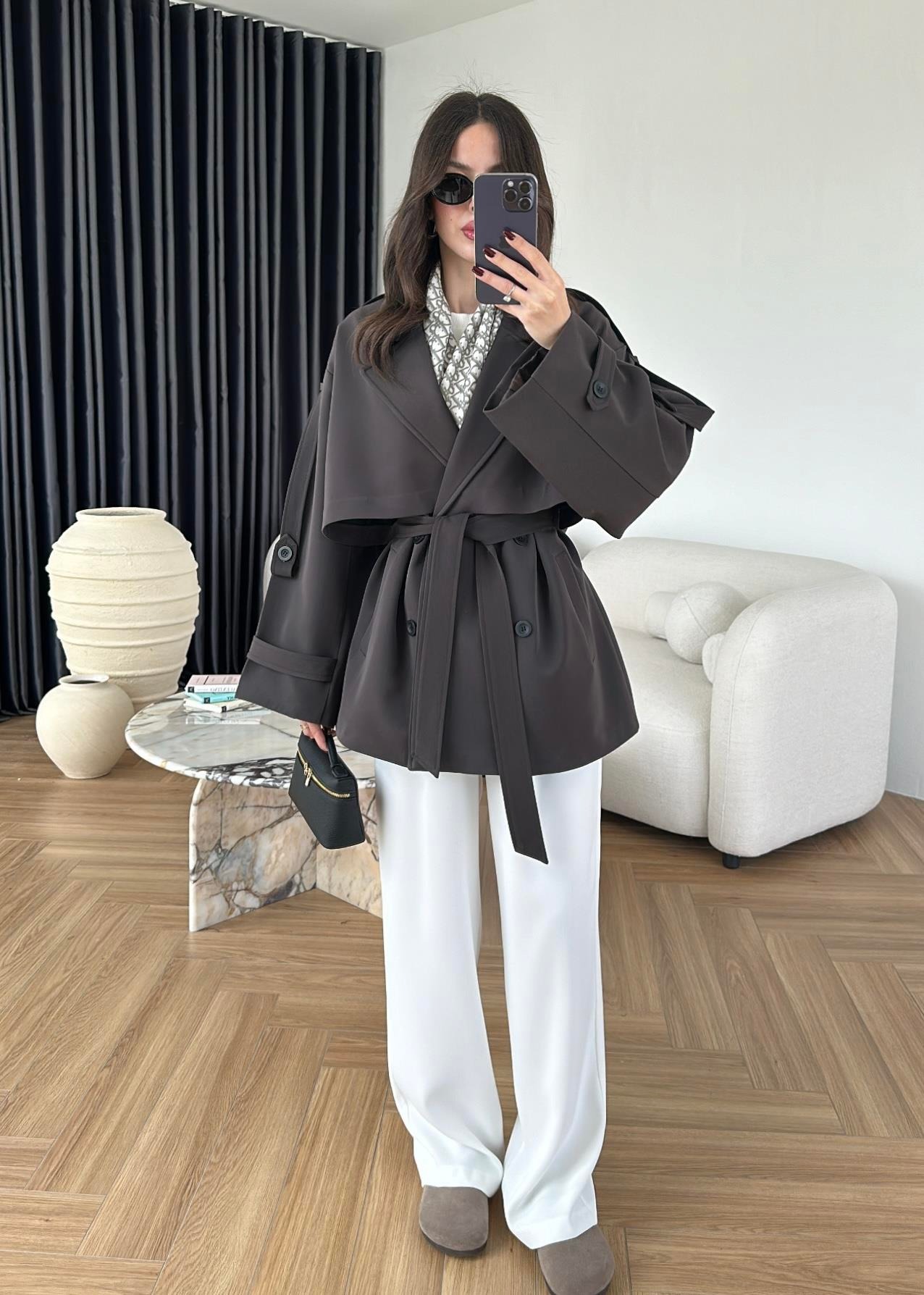 Rüzgarlıklı Ara Boy Trençkot GRİ KAHVE