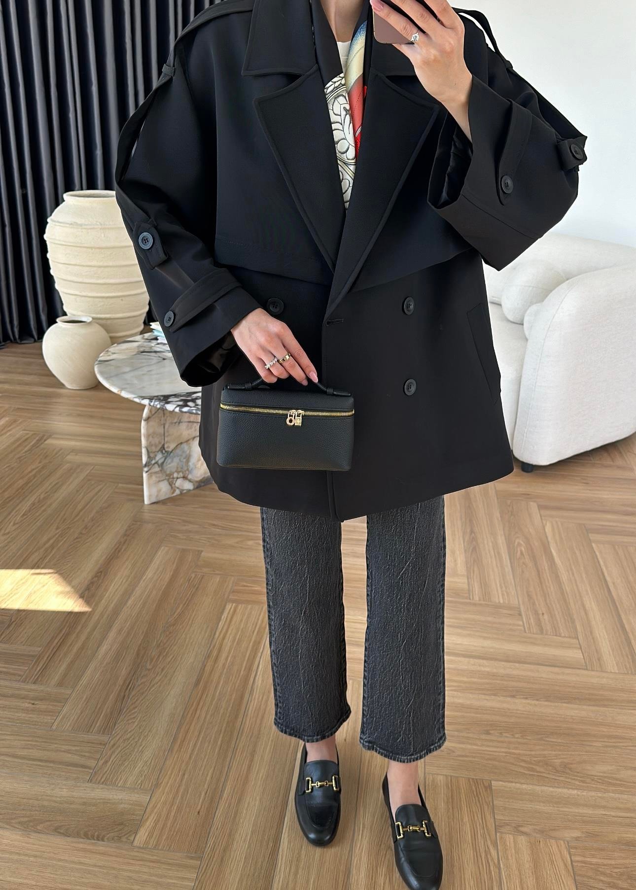 Rüzgarlıklı Ara Boy Trençkot SİYAH