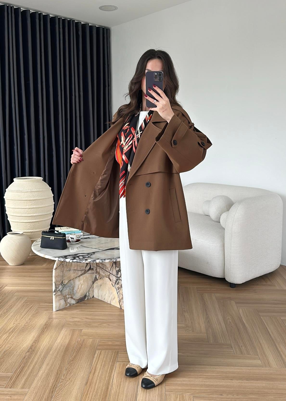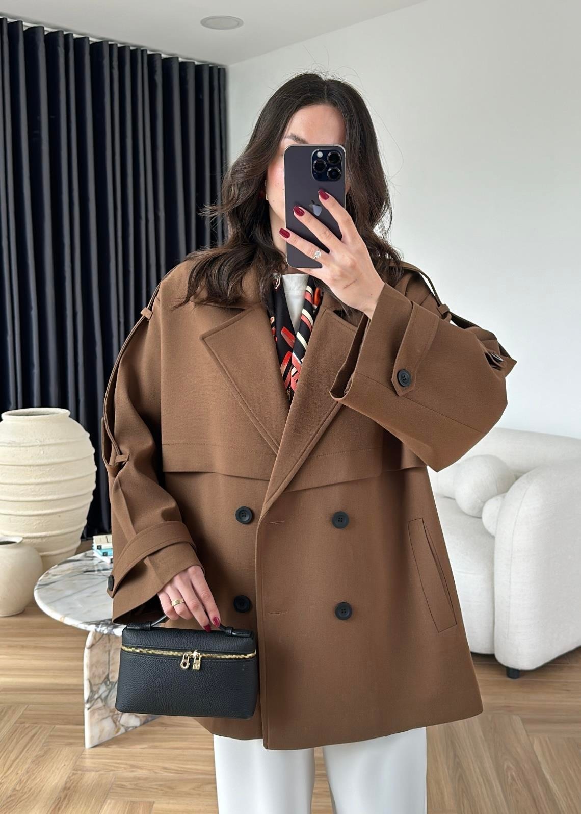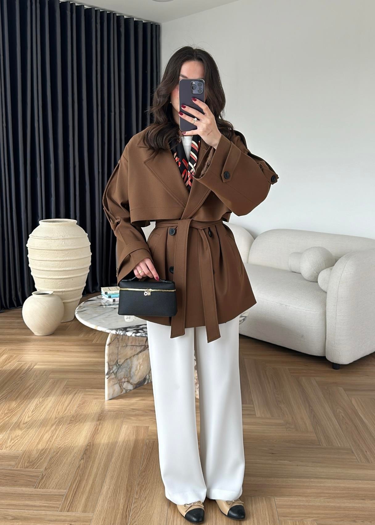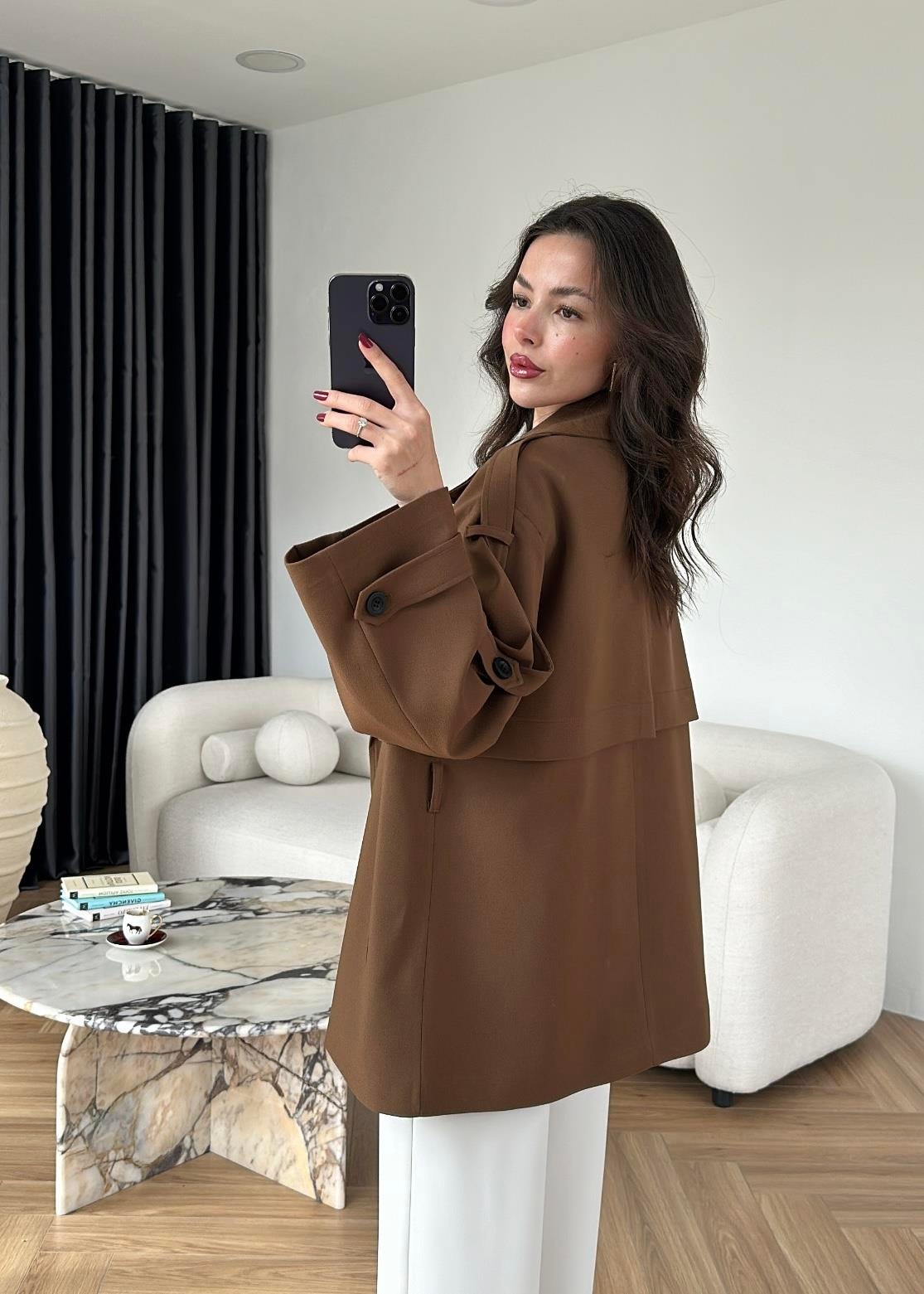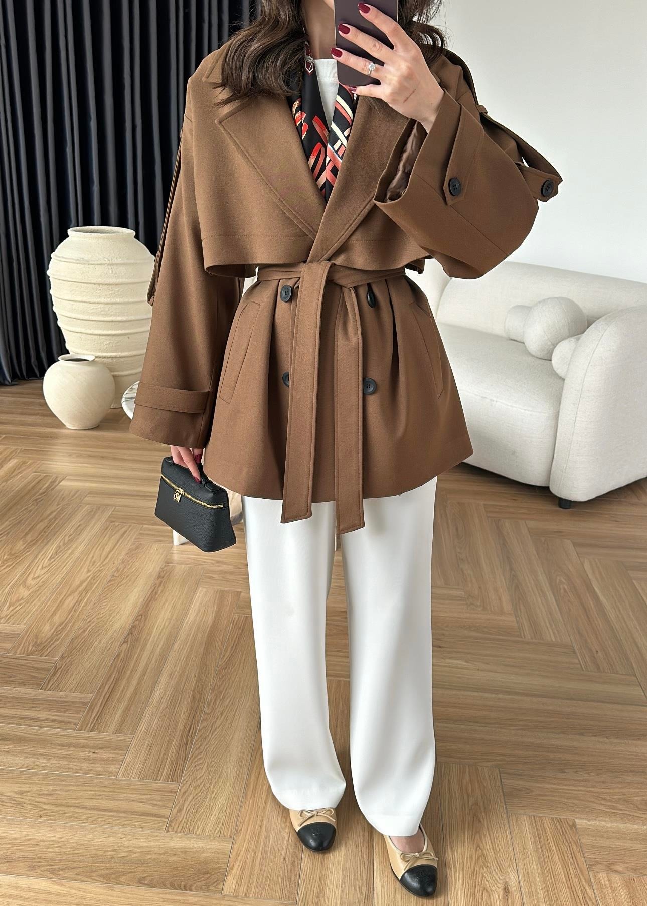 Rüzgarlıklı Ara Boy Trençkot AÇIK KAHVE