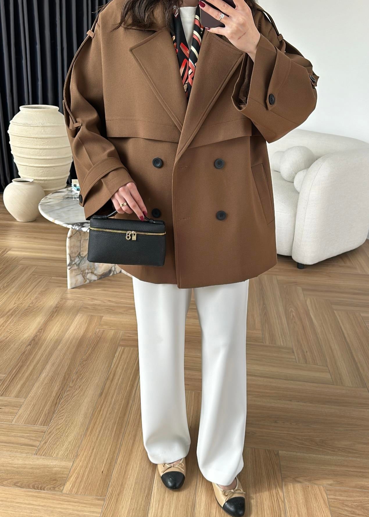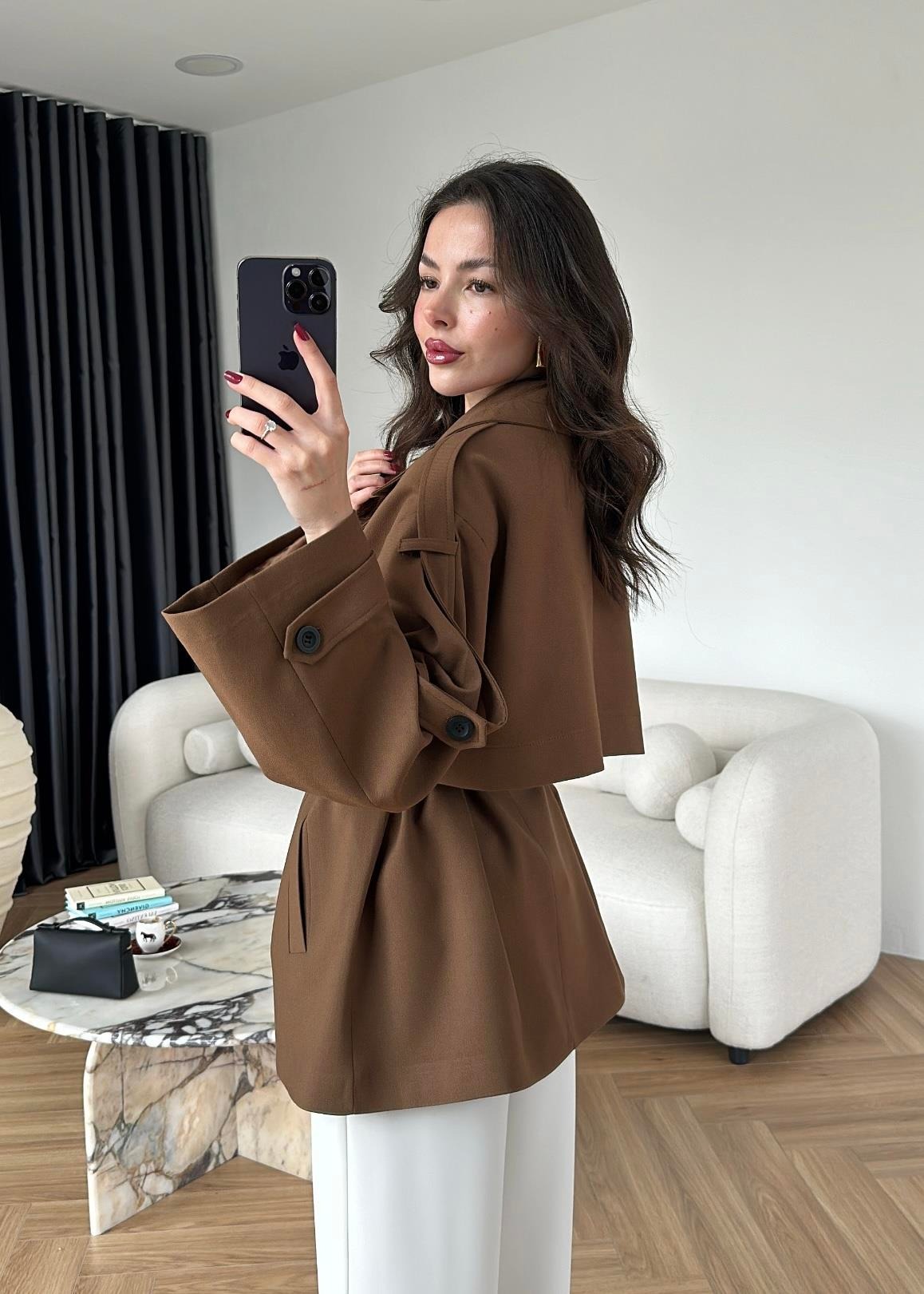 Çekimde S Beden kullanılmıştır,Astarlı kuşaklı ve ceplidir.