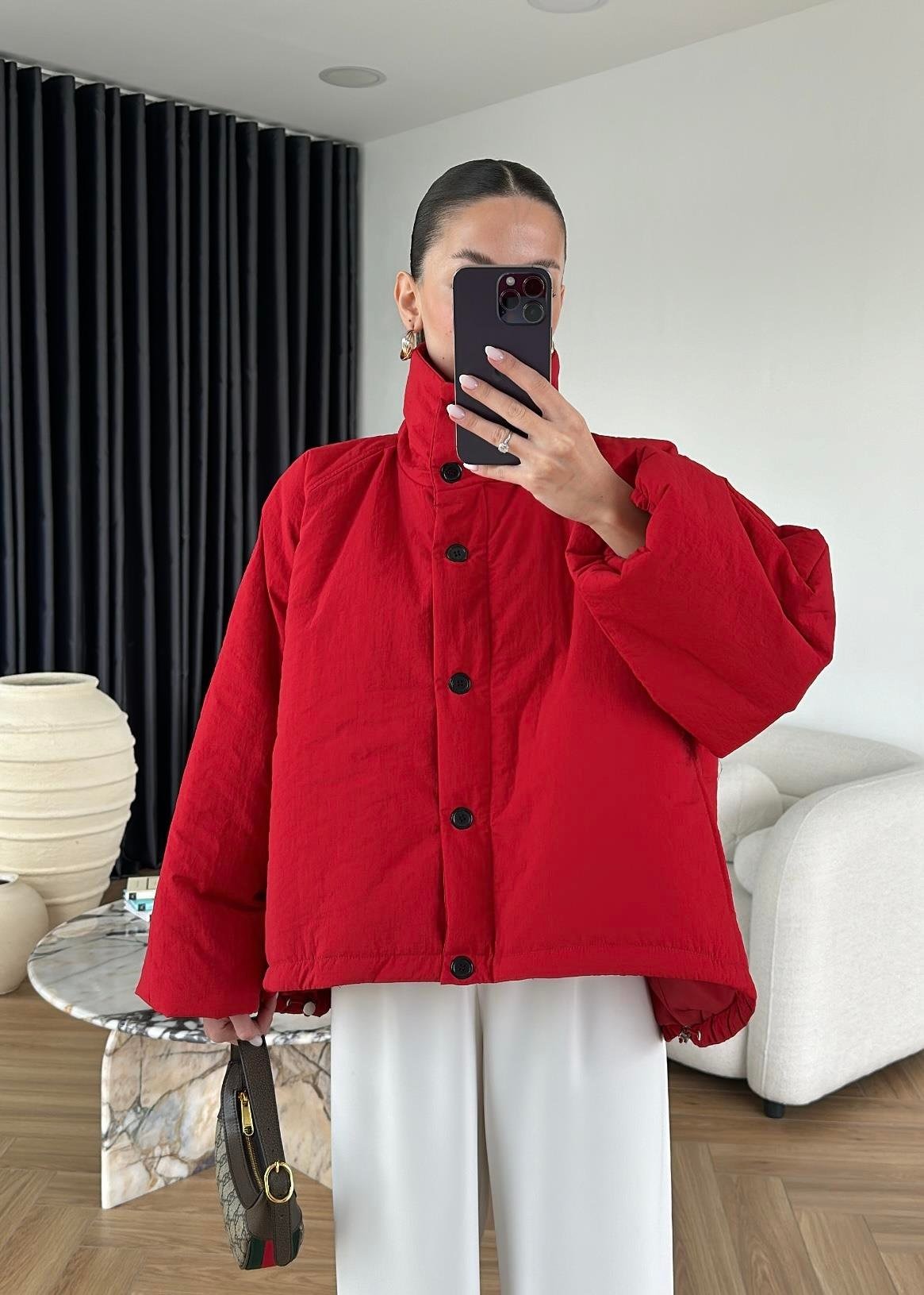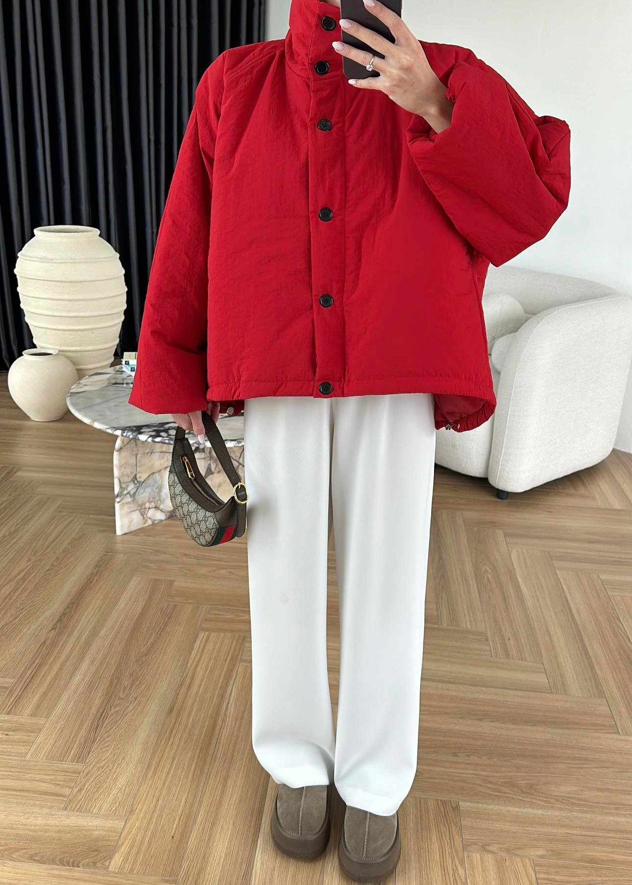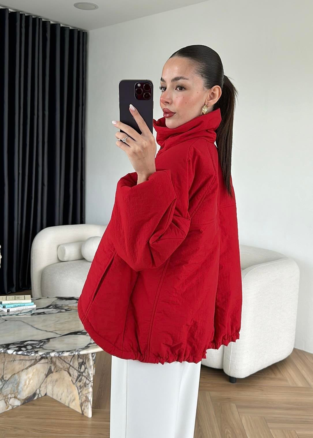 Dik Yakalı Arkası Uzun Mont KIRMIZI