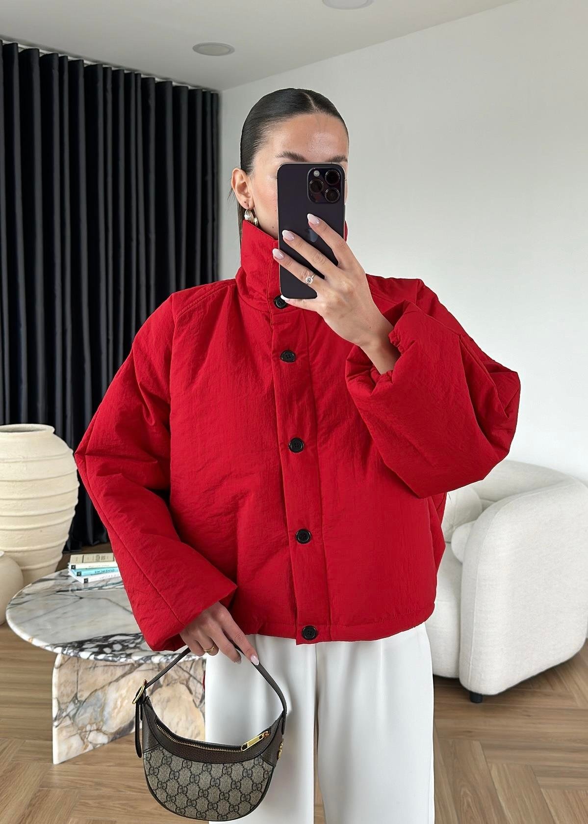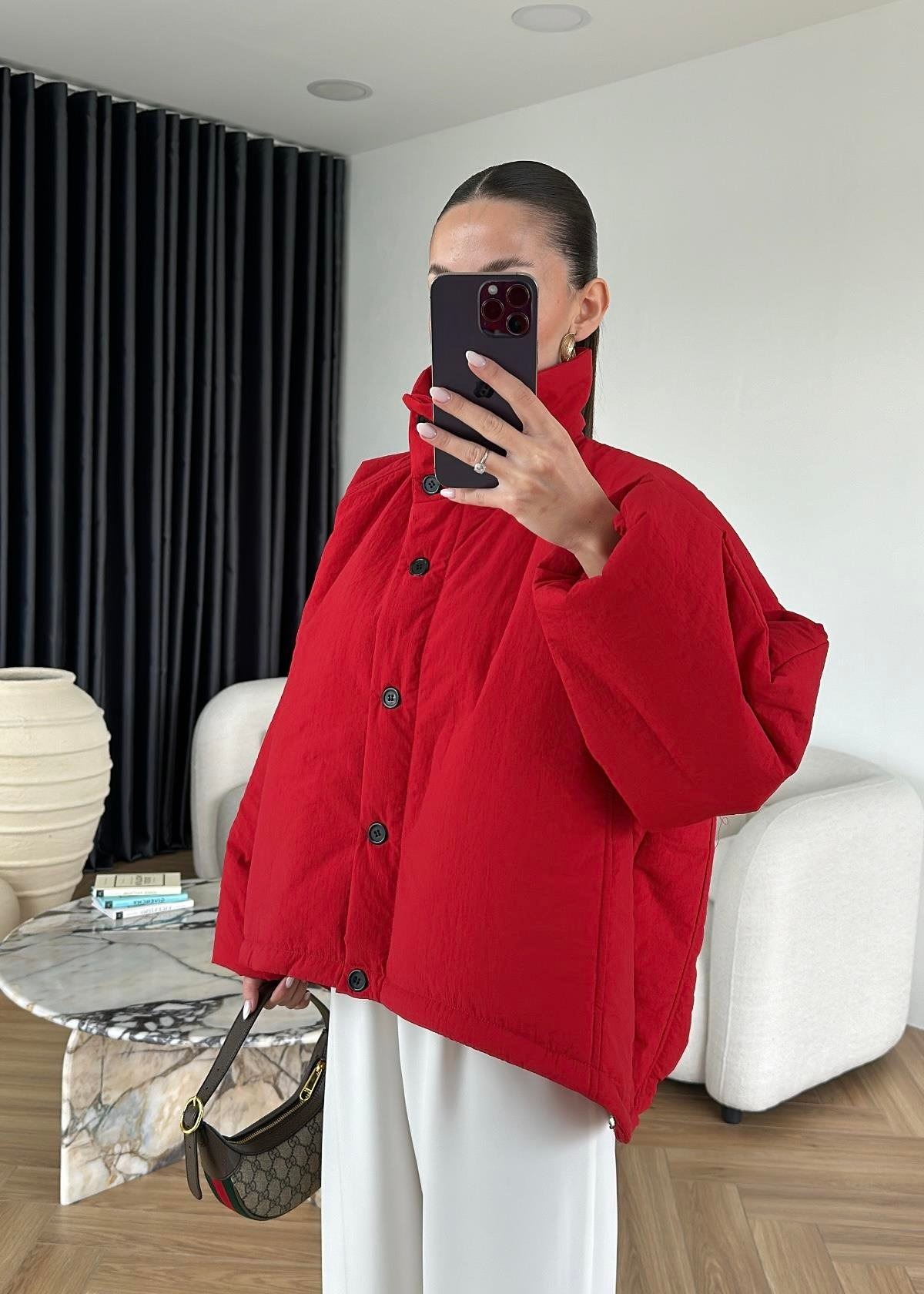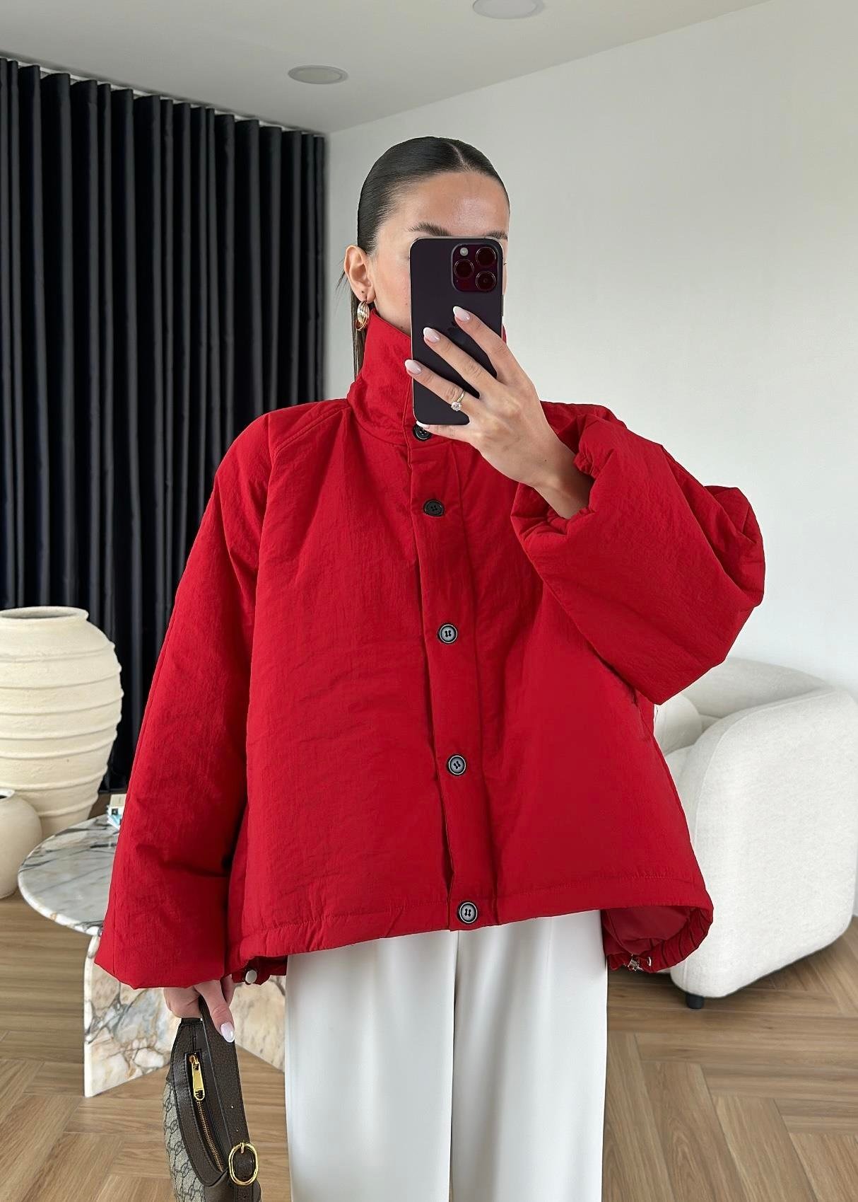 Dik Yakalı Arkası Uzun Mont KIRMIZI