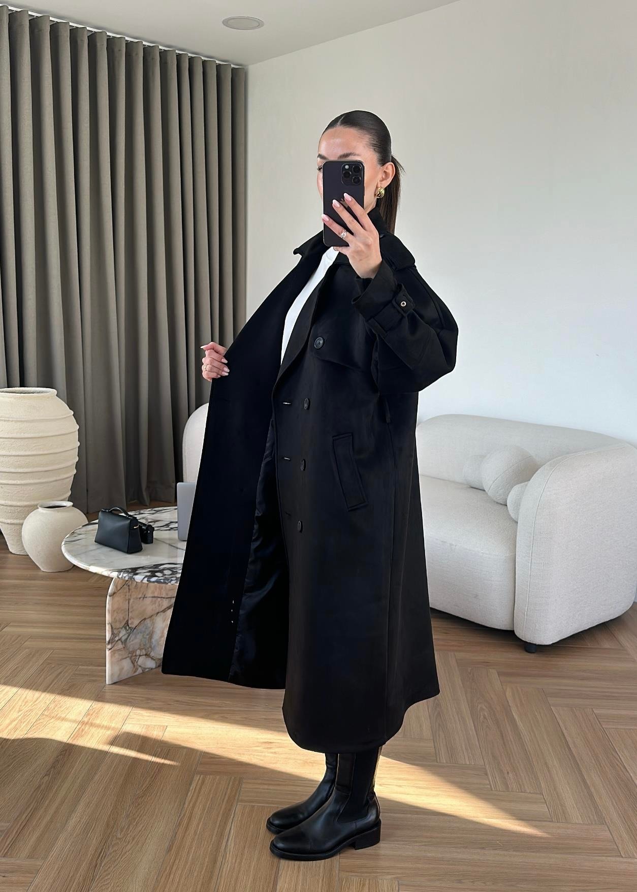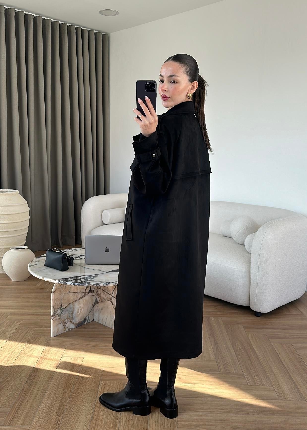 Vatkalı Süet Kaban SİYAH