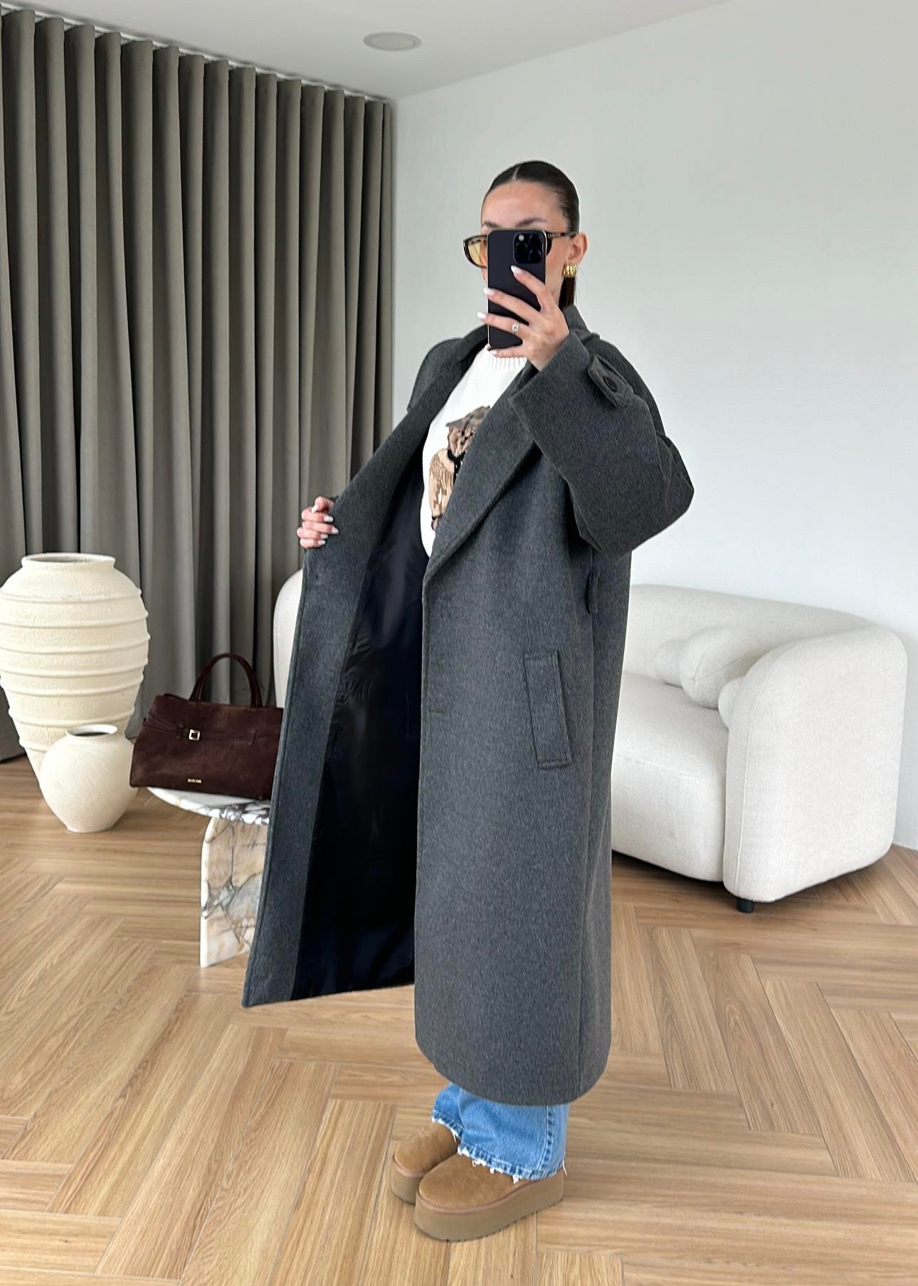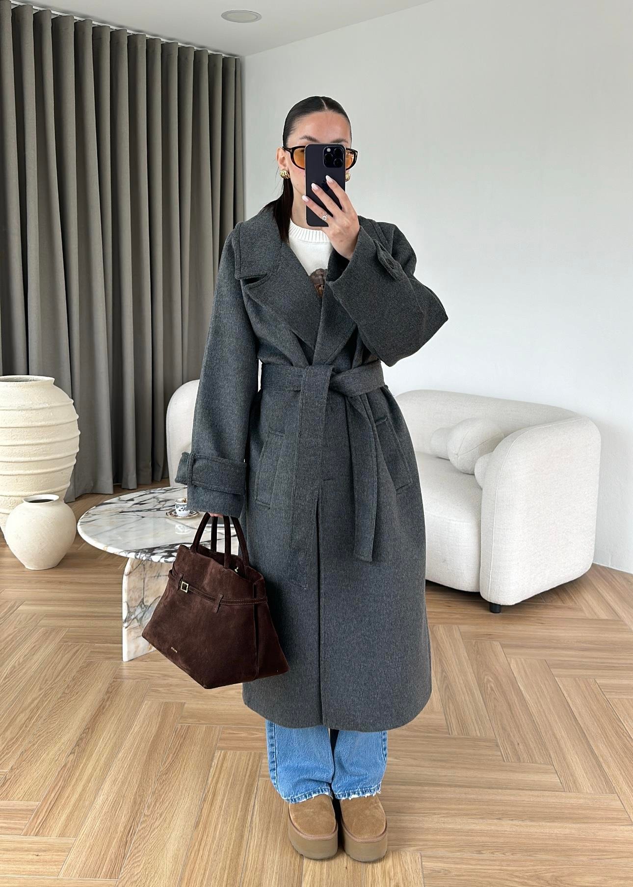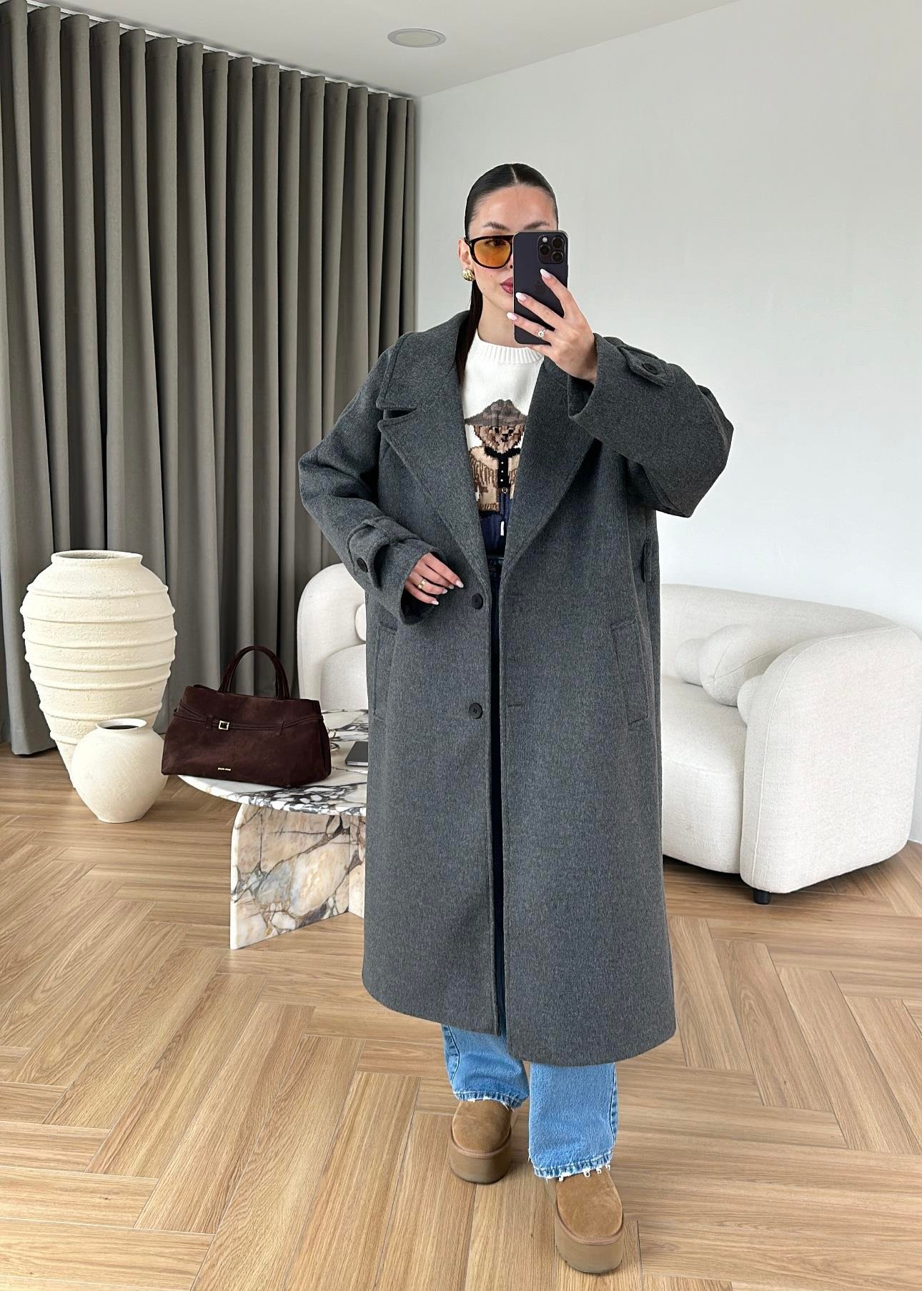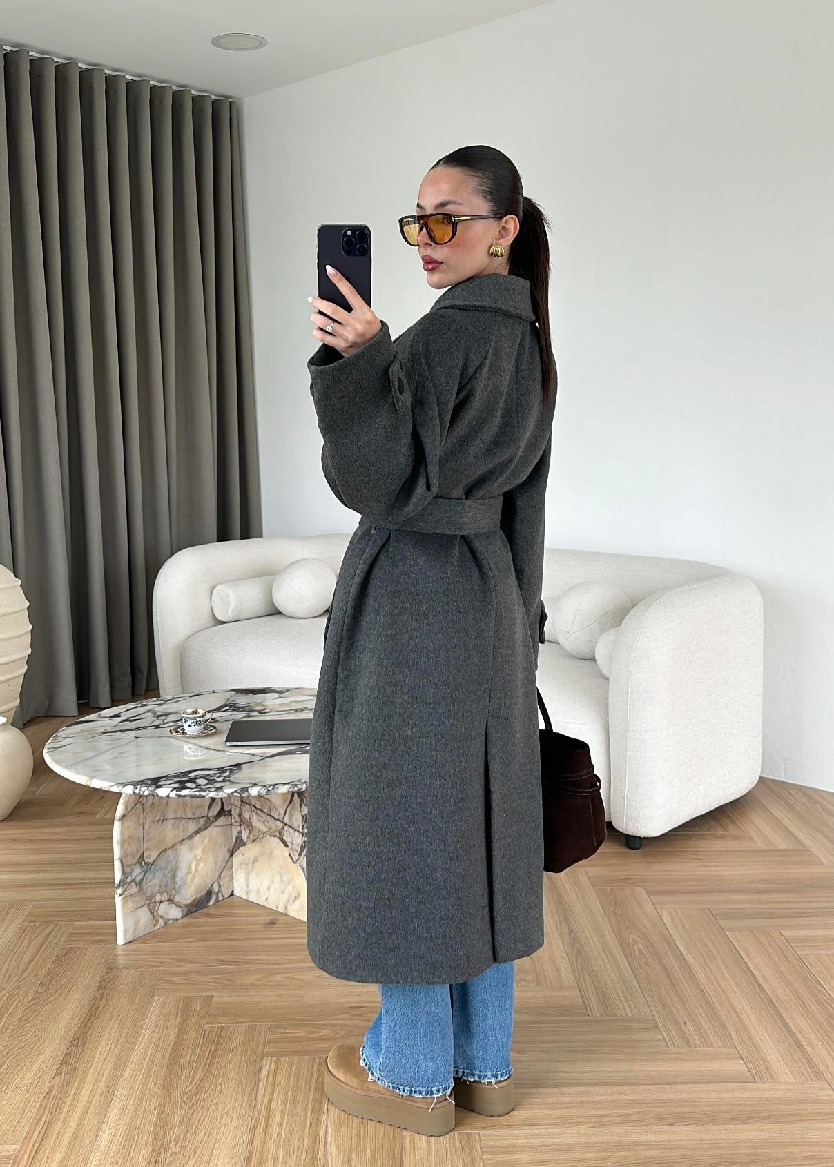 İki Düğmeli Kuşaklı Kaban ANTRASİT