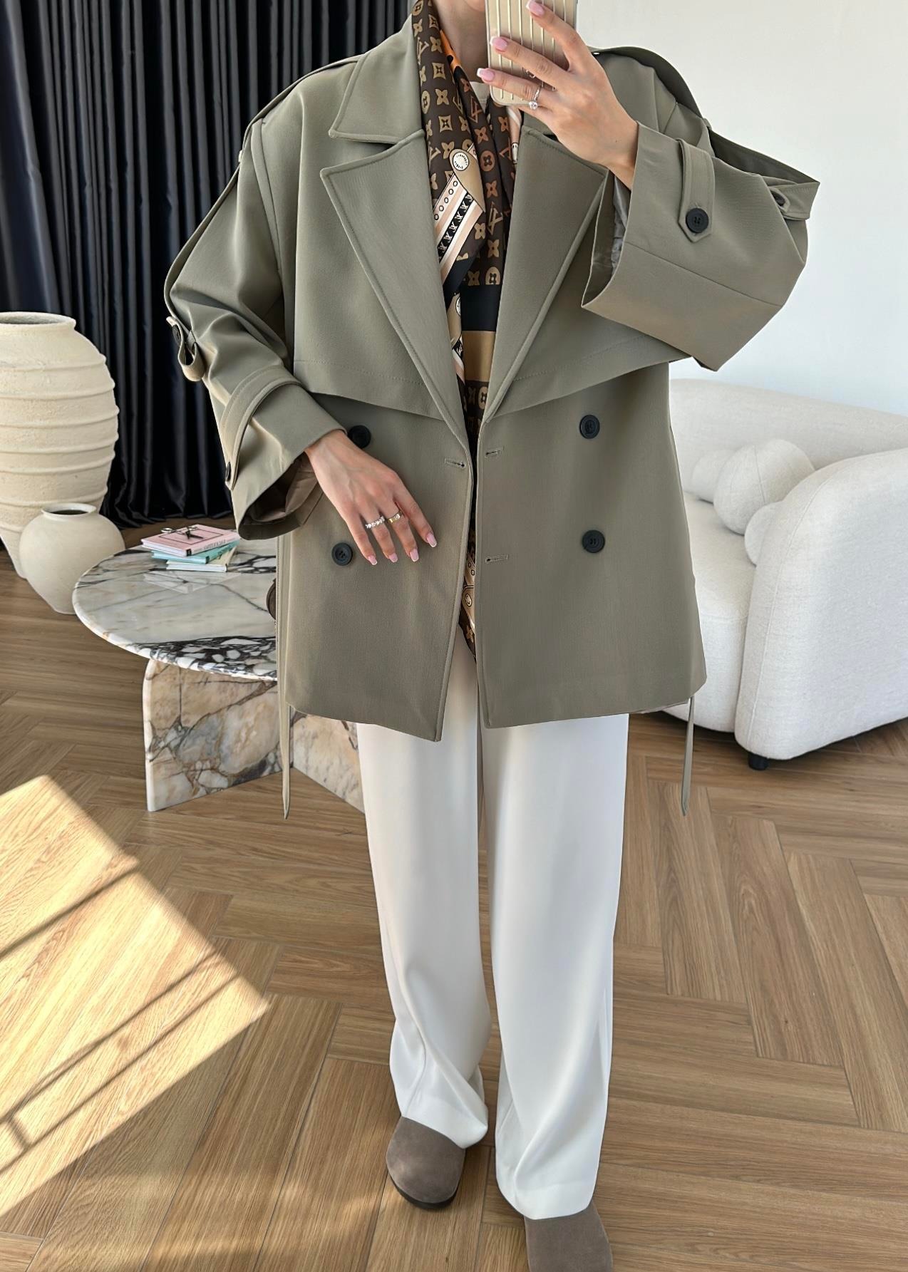 Rüzgarlıklı Ara Boy Trençkot HAKİ