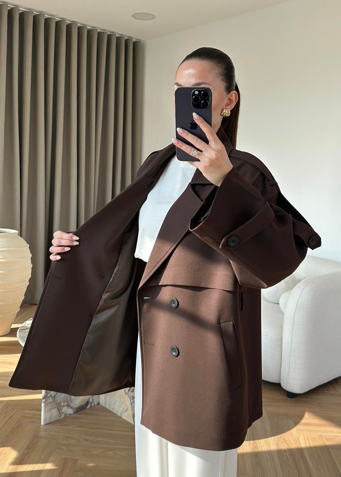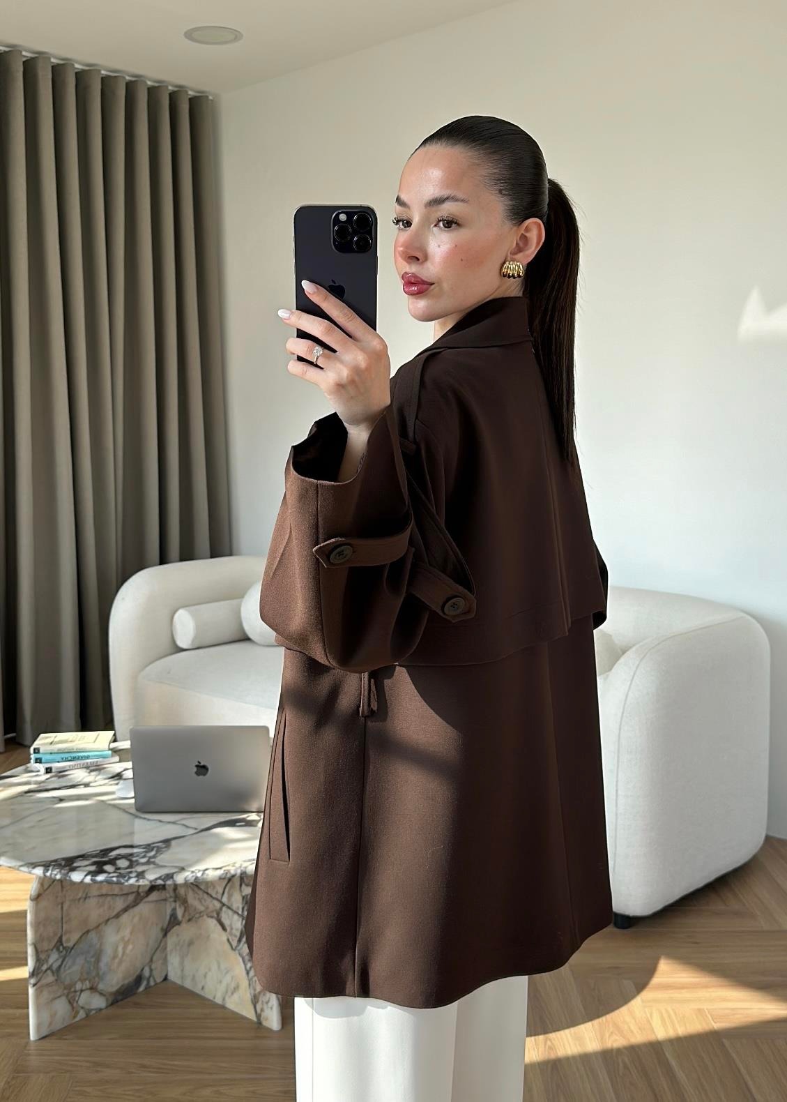 Rüzgarlıklı Ara Boy Trençkot KOYU KAHVE